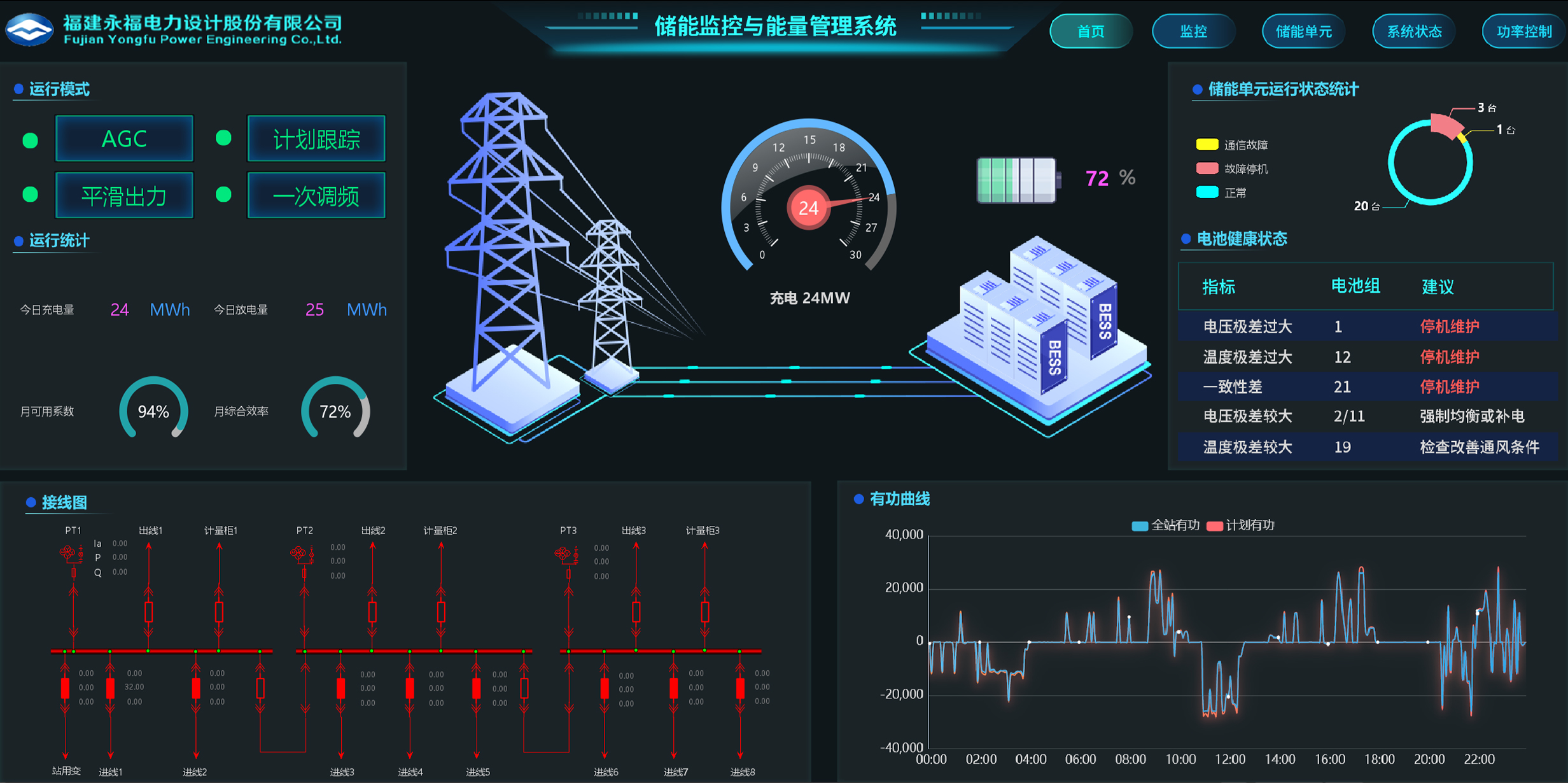 永福数能专注于EMS及相关平台系统的研发,提供从端到云的一站式解决方案。S-5000ESS储能监控及能量管理系统是永福数能针对储能电站三大场景,专为电源侧、电网侧和用户侧储能电站设计,集成了多项行业领先技术。该系统具备实时监控、精准控制和高效优化功能,支持GW级电站数据接入与分析、毫秒级调度响应及全息时序数据库等先进特性,全面覆盖从200kWh到GW级大型储能电站的数字化与智能化管理需求,确保电站安全稳定运行并实现经济效益最大化。凭借灵活高效、安全稳定的特点,S-5000ESS系统已在广东、江苏、青海、内蒙古等地的储能电站项目中成功应用,并获得客户高度认可。